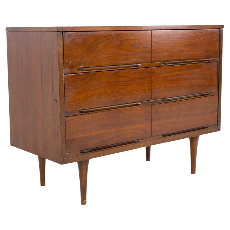 Mid Century Walnut 6 Drawer Lowboy Dresser At 1stdibs